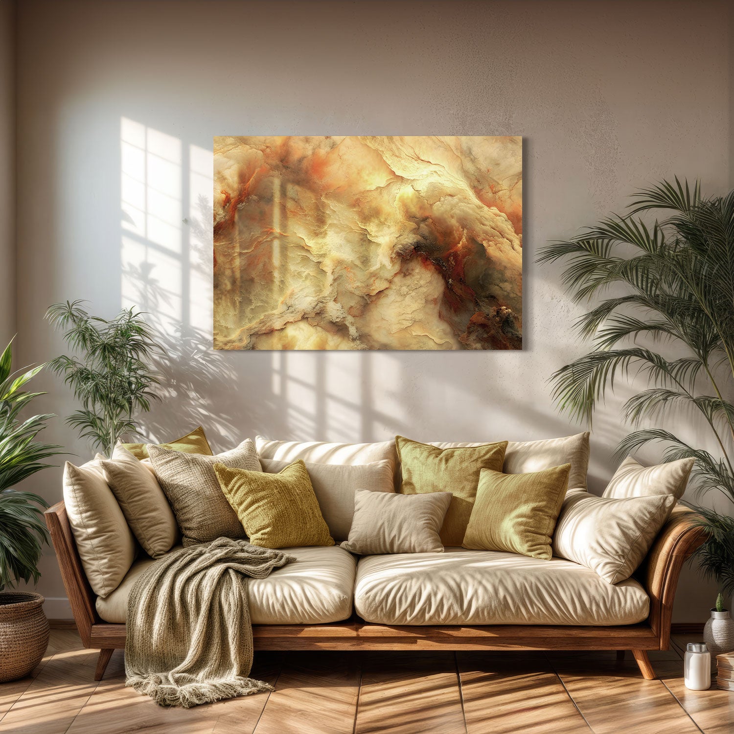 "This visual, blending natural tones, offers an abstract representation of tranquility and fervor, With hidden stories within, this piece not only adds a warm atmosphere to your space but also provides an opportunity to reflect your inner thoughts."