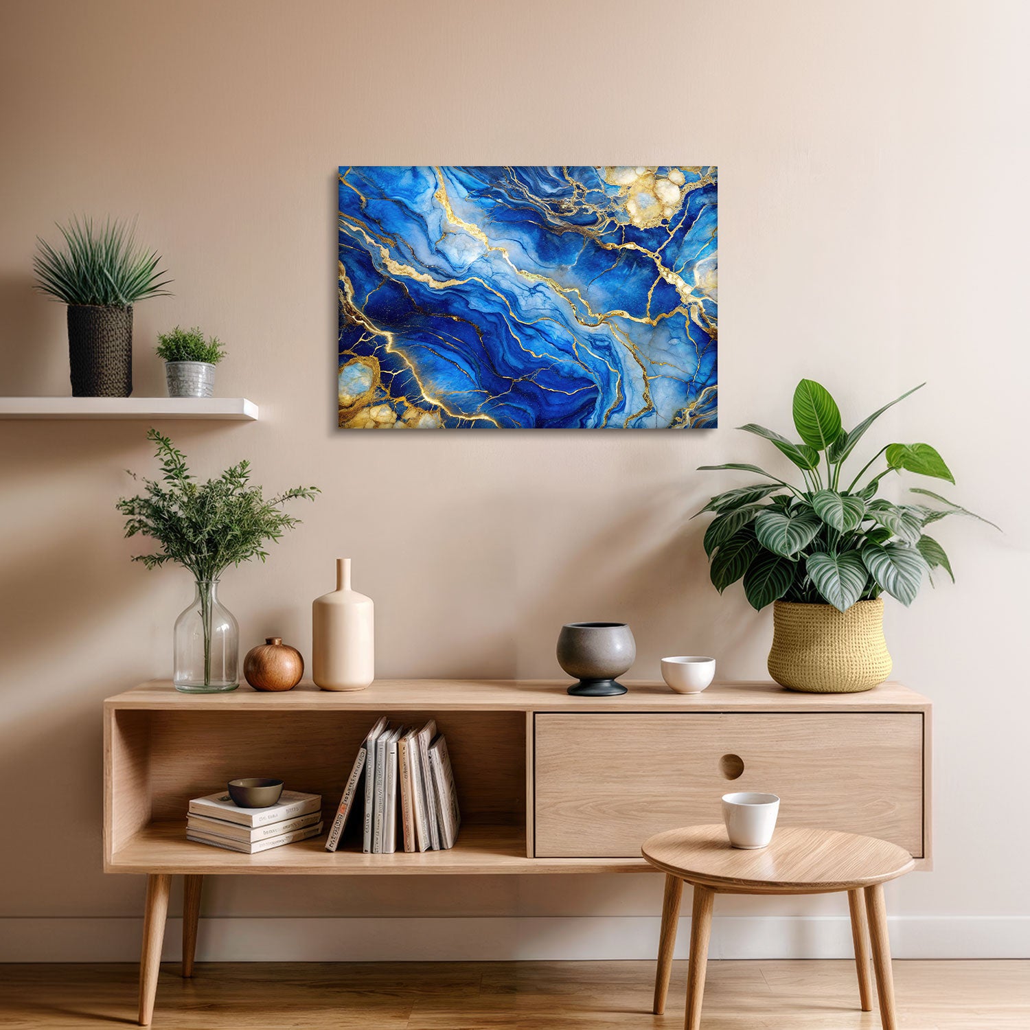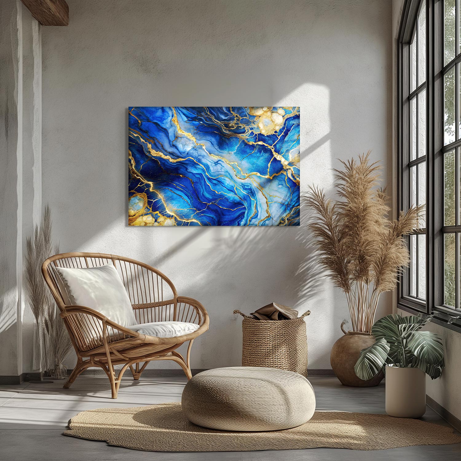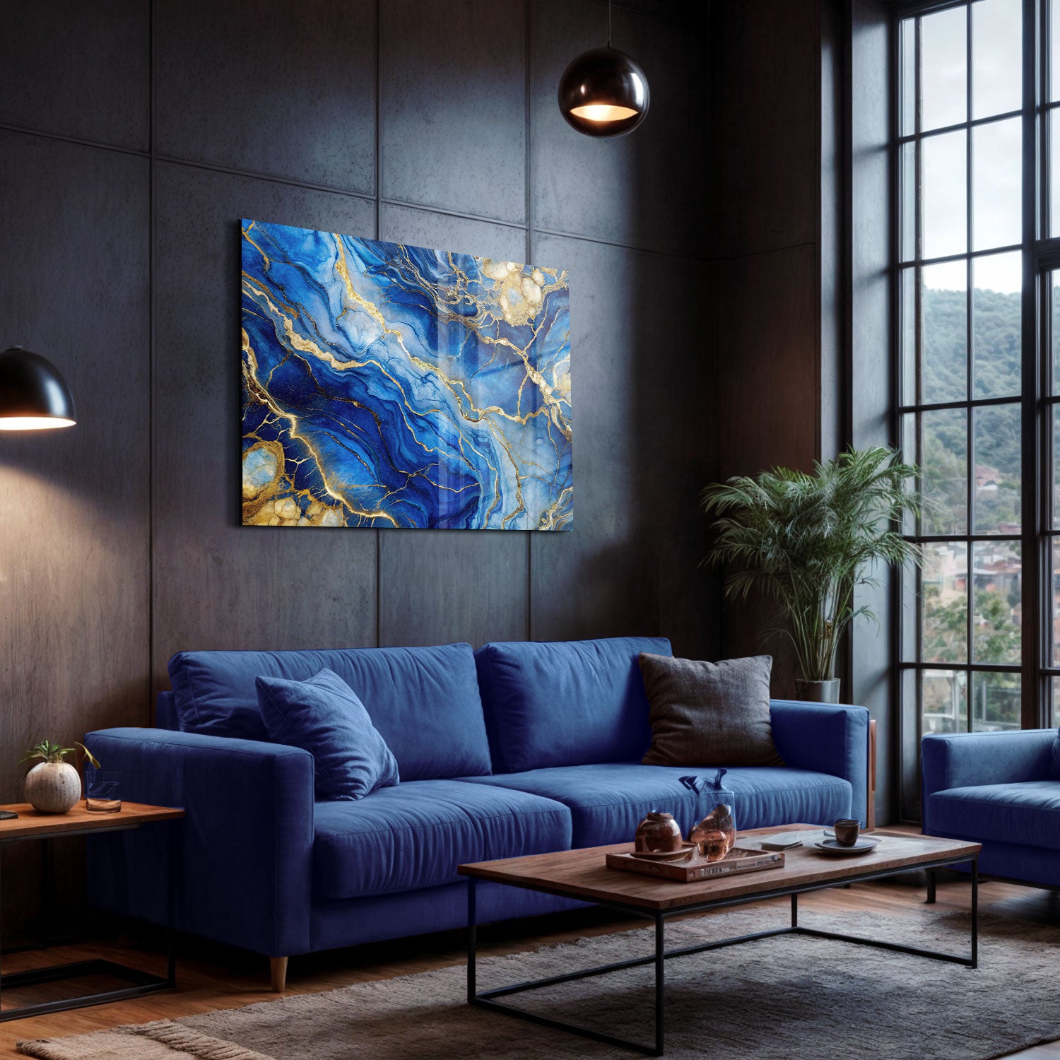 "This pattern, where blue and golden veins intertwine seamlessly, brings the deep and tranquil power of the ocean into your home, Each curve touches your soul, leaving you in awe of nature's boundless artistry every day.