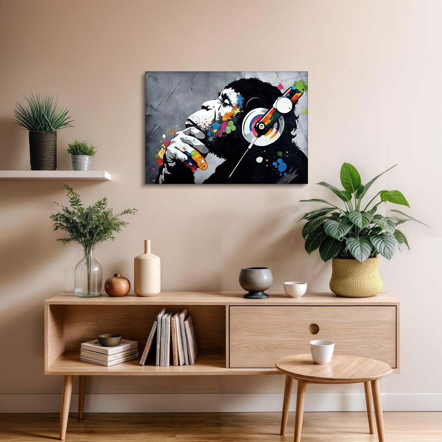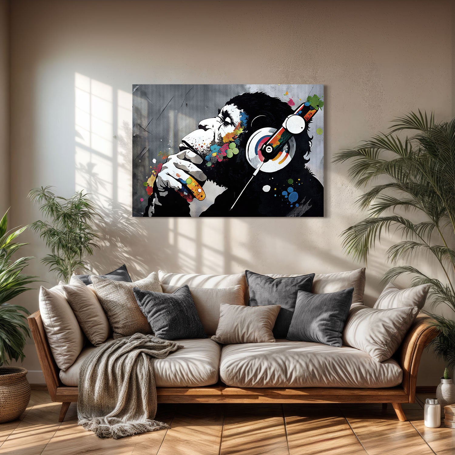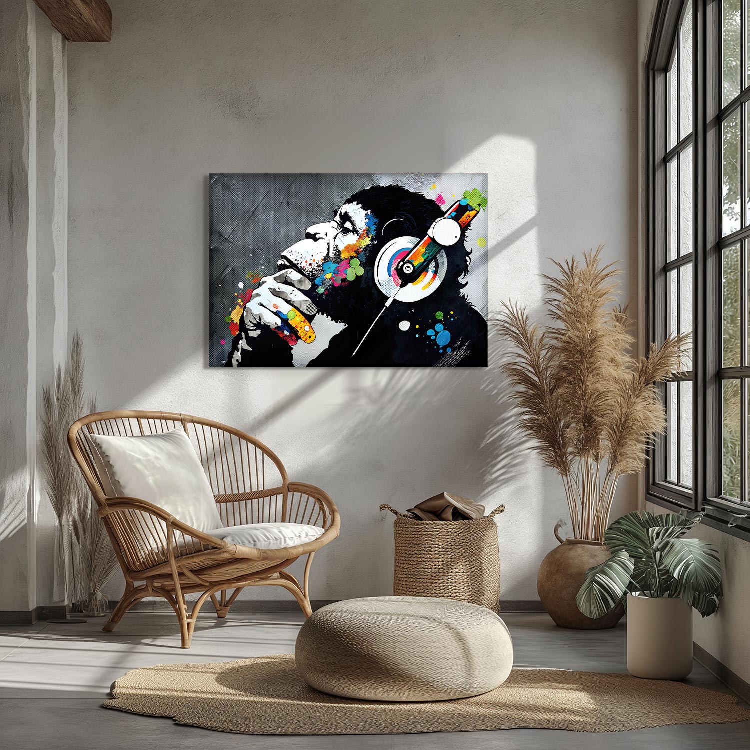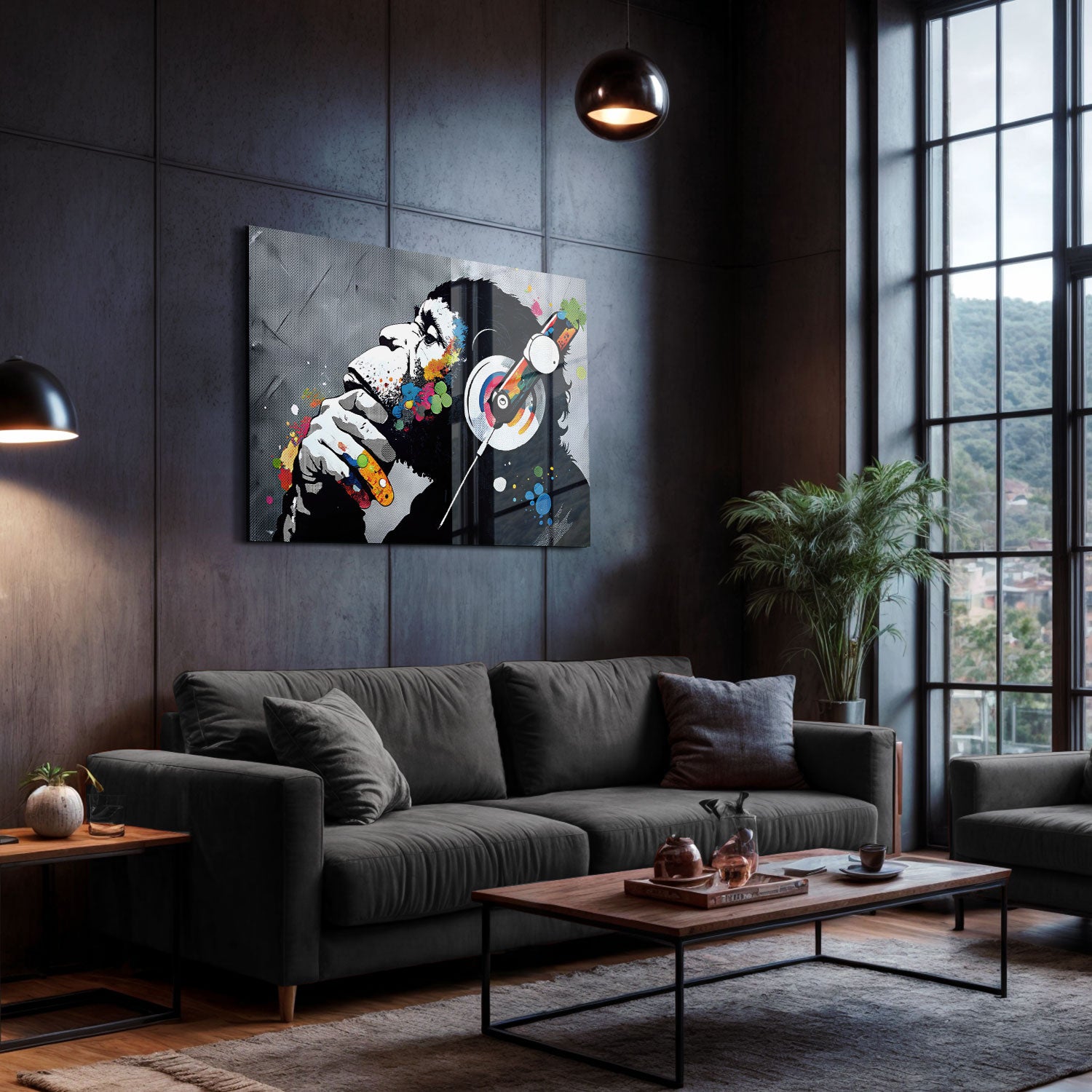 This artwork, reflecting the profile of a gorilla, visualizes an inner melody by combining the thinker's silence with a riot of colors, It enables the viewer to emotionally connect by bridging the soul with the visual counterpart of sound.