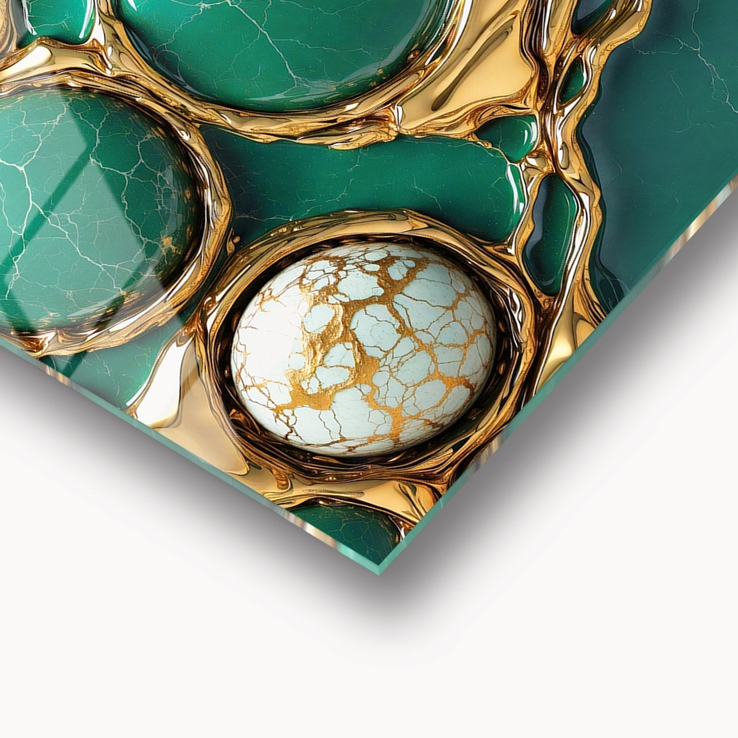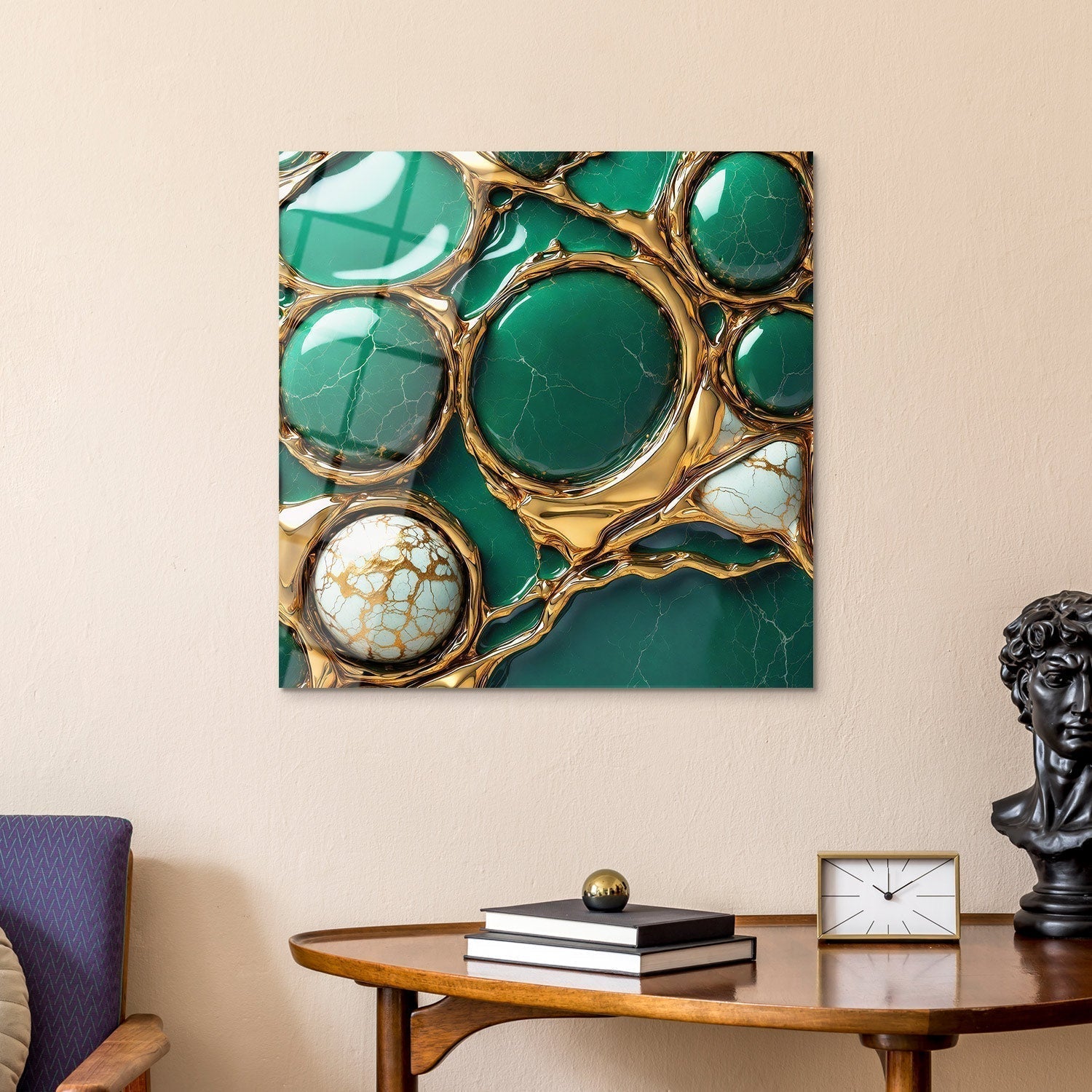 Green marble surfaces with veins of gold display a locked harmony of luxury and nature, This visual feast will elevate the energy of your home with every glance and invite you to a state of tranquility,