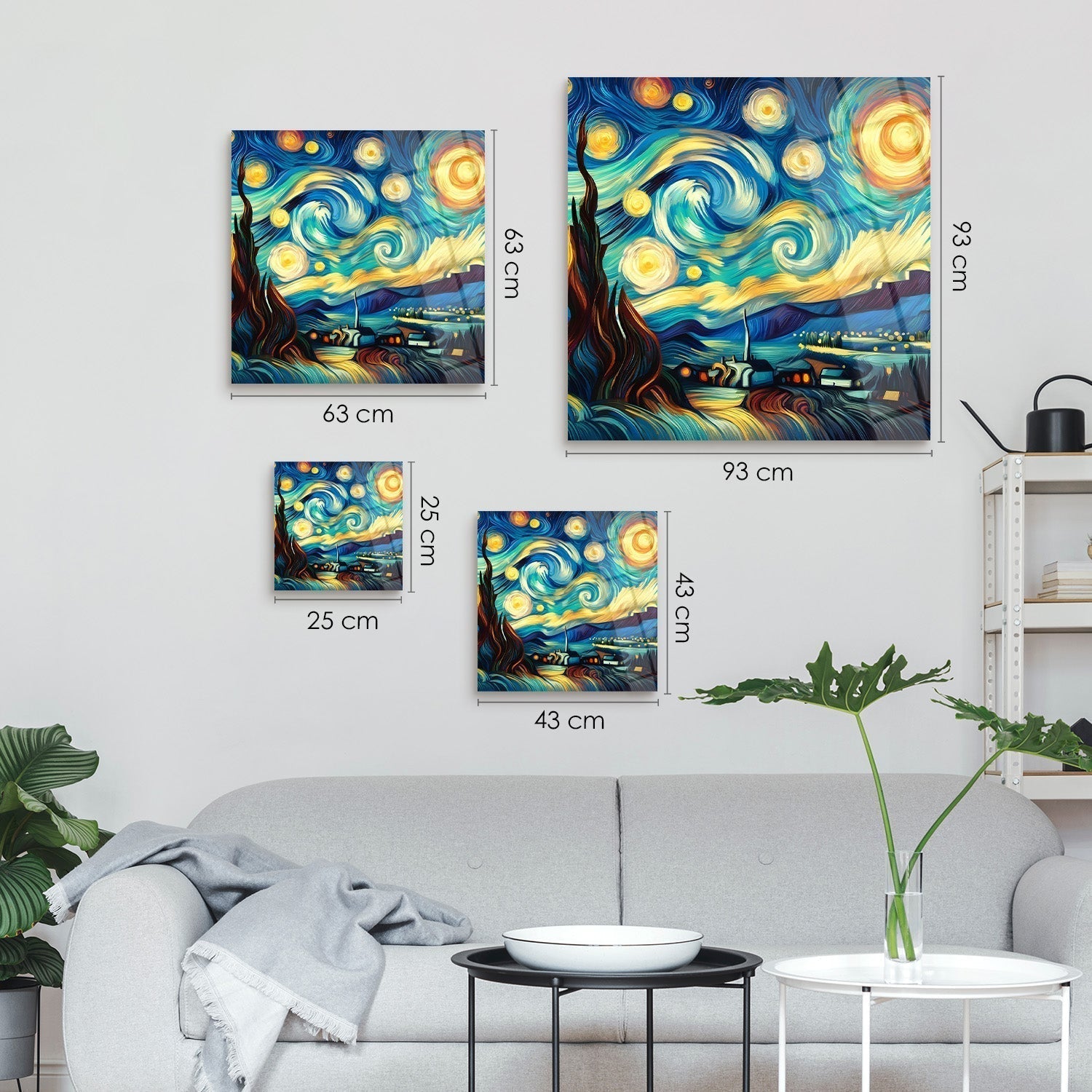 The infinite cycle of the night sky reflects onto the canvas with the shimmer of stars, This sky dance, brought to life by brushstrokes, expresses a tranquility beyond time, Let this artwork, filling your eyes and soul with stars with every gaze, bring a universal touch to your home,