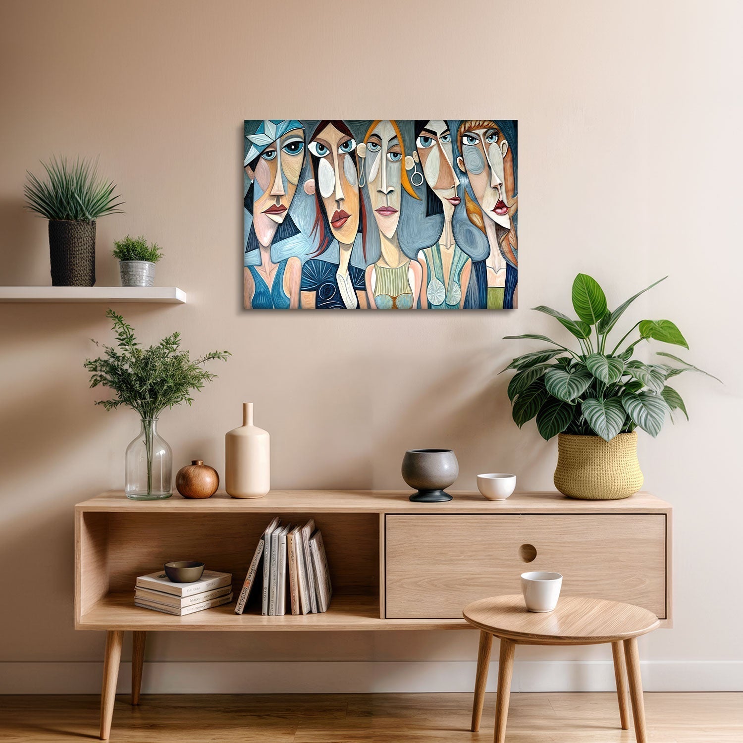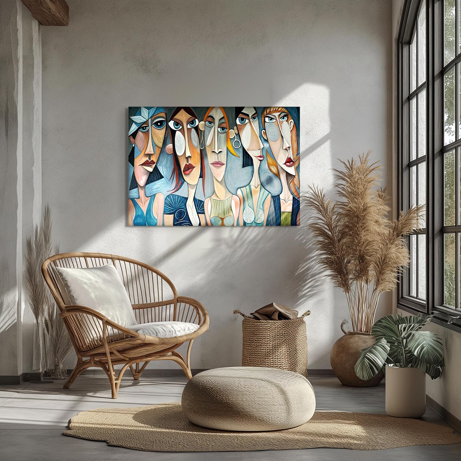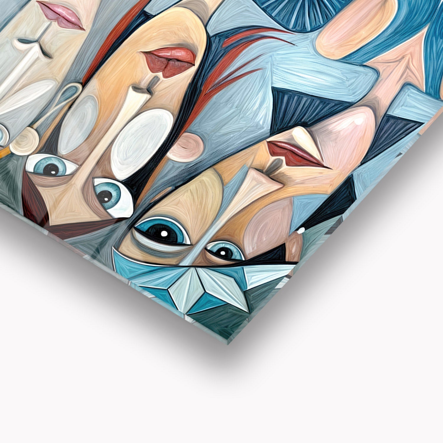 Abstract and distinct facial expressions reflect a discordant harmony of complex emotions, This piece invites the viewer on a contemplative journey into the depths of feelings,