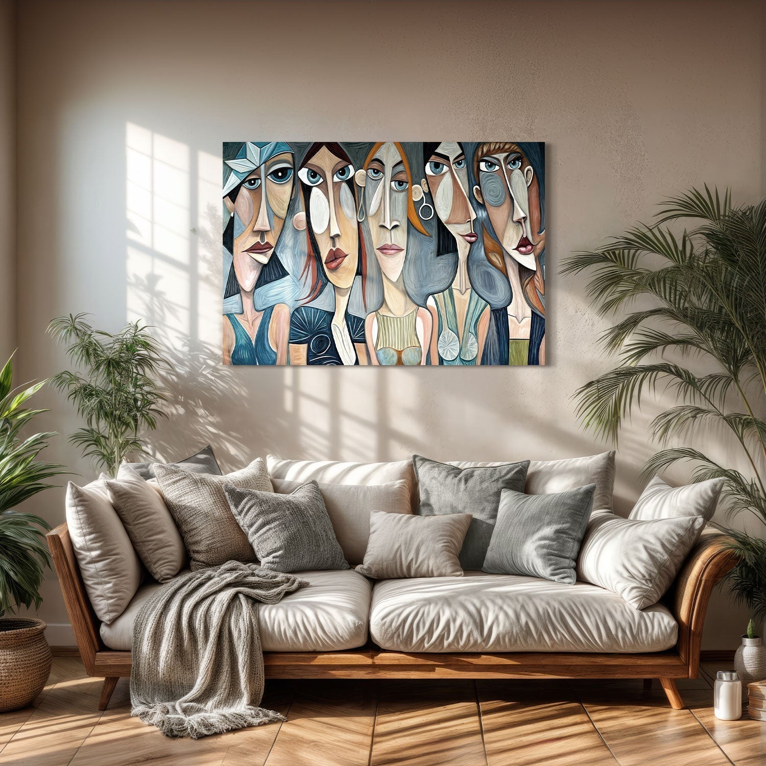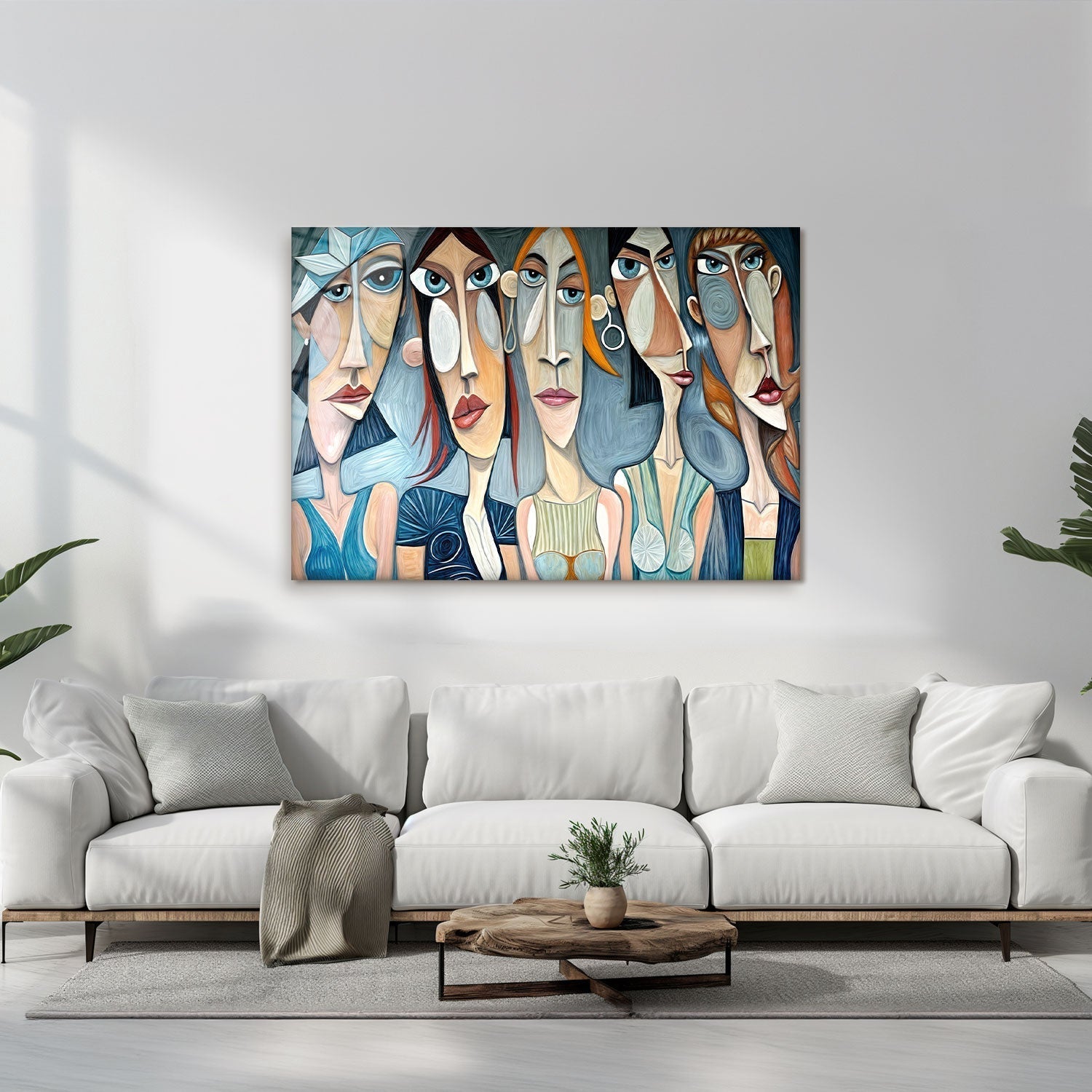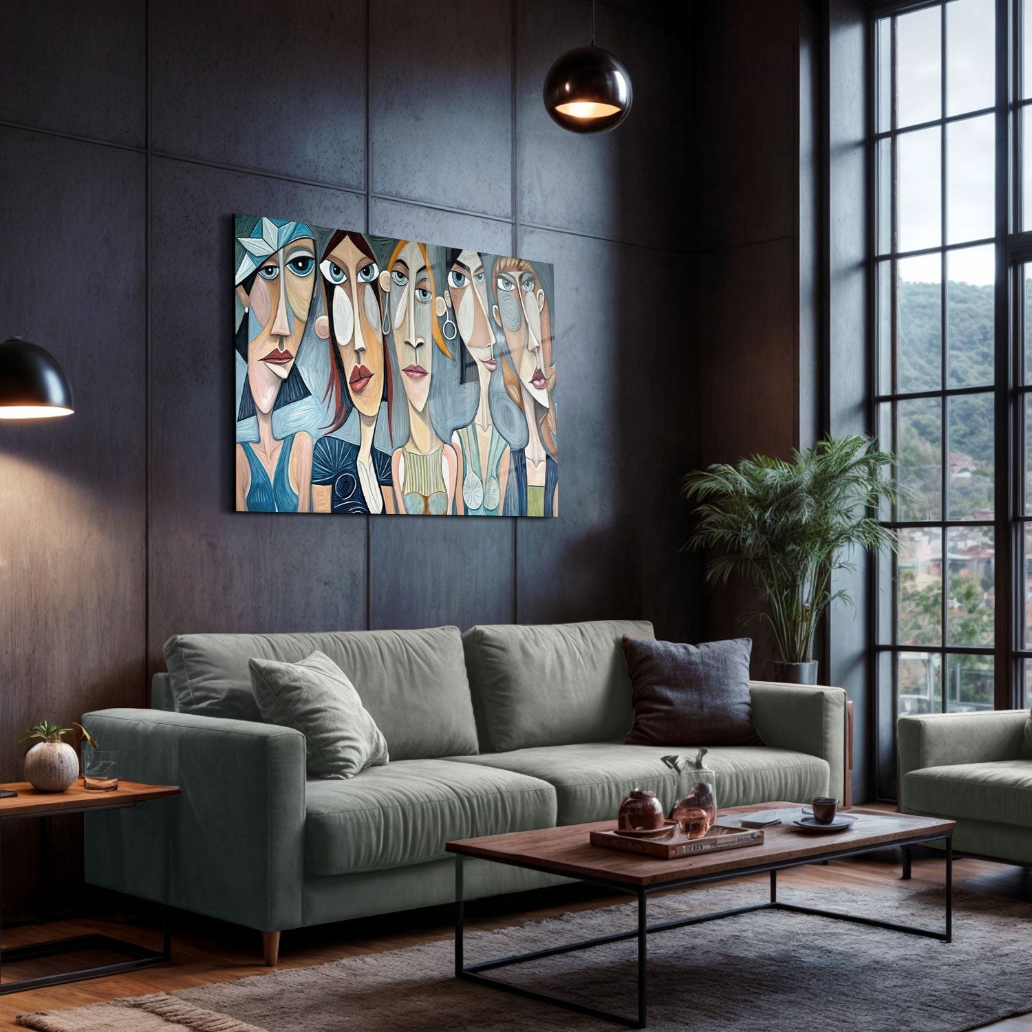 Abstract and distinct facial expressions reflect a discordant harmony of complex emotions, This piece invites the viewer on a contemplative journey into the depths of feelings,