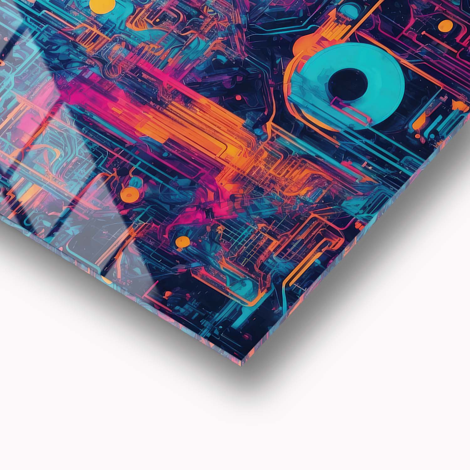 This artwork, depicting a cyber-space chaos hidden among the neon lights of a nighttime city, offers a creativity that transcends the boundaries of contemporary art, It provides each viewer with the opportunity to get lost and explore the dazzling labyrinths of this digital world,