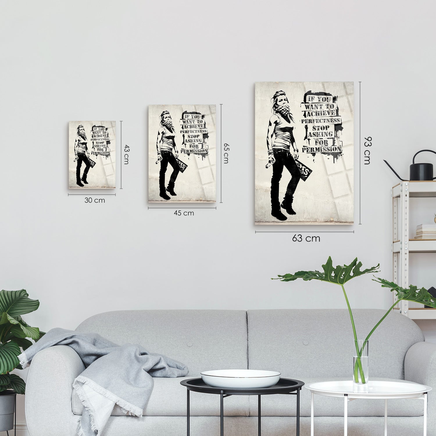 This wall art features a figure in a bold stance, holding a spray paint can, reminding the viewer that it's time to take action, In your home, it will serve as a source of inspiration with every glance, encouraging you to chase perfection and stop waiting for permission,