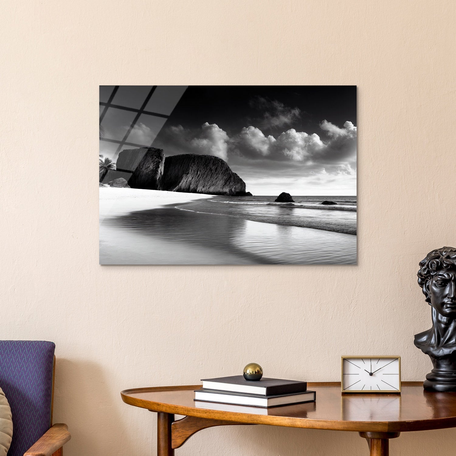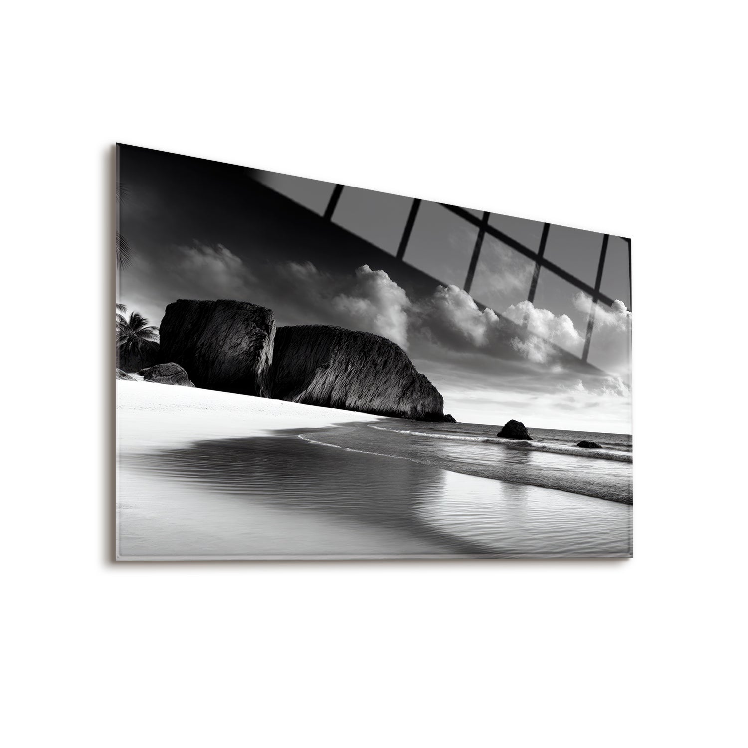 Within the dramatic tones of black and white, the tranquility of a tropical beach perfectly reflects solitude and serenity, When displayed on your home's wall, this visual will open a gateway to remind you of inner peace and the quiet moments of escape,