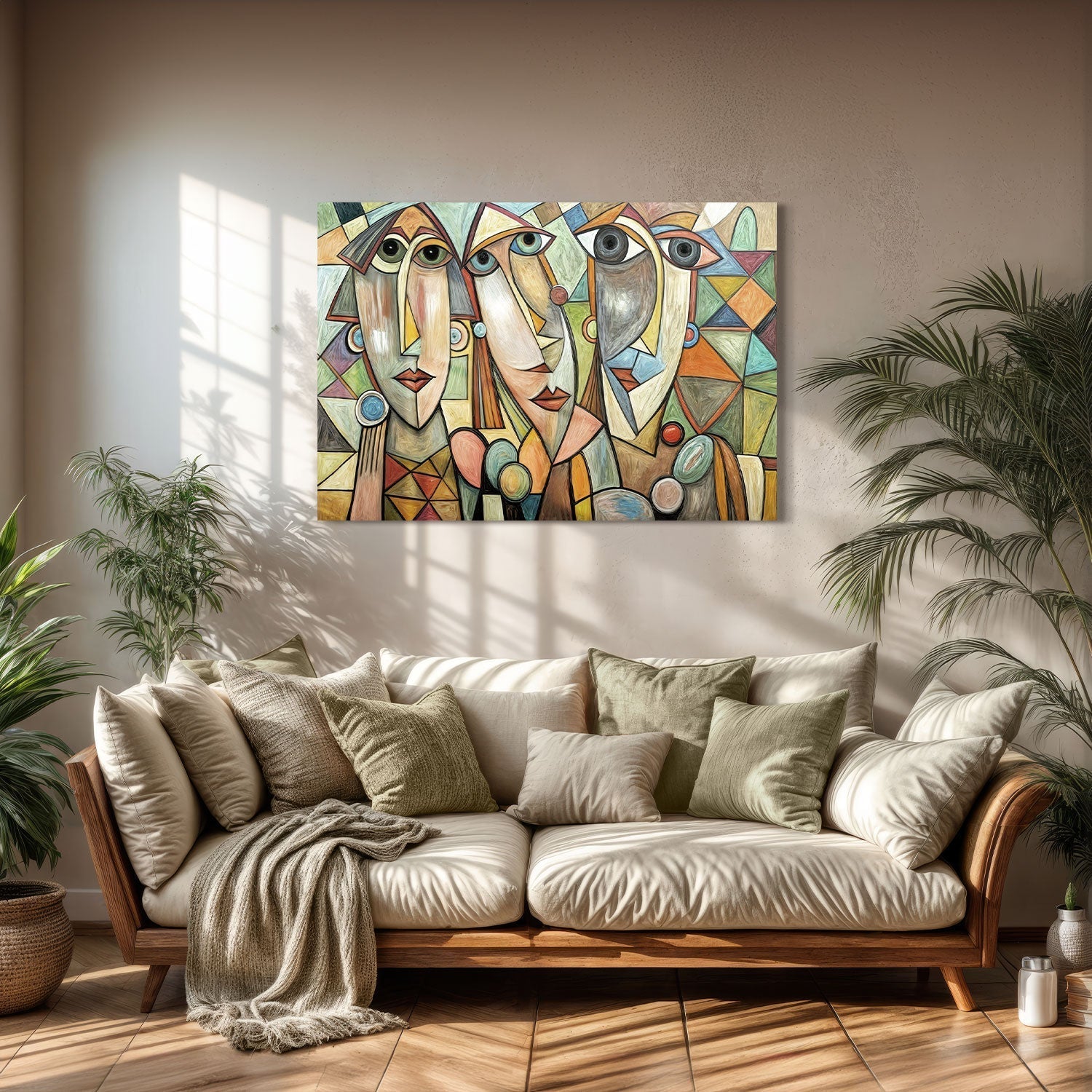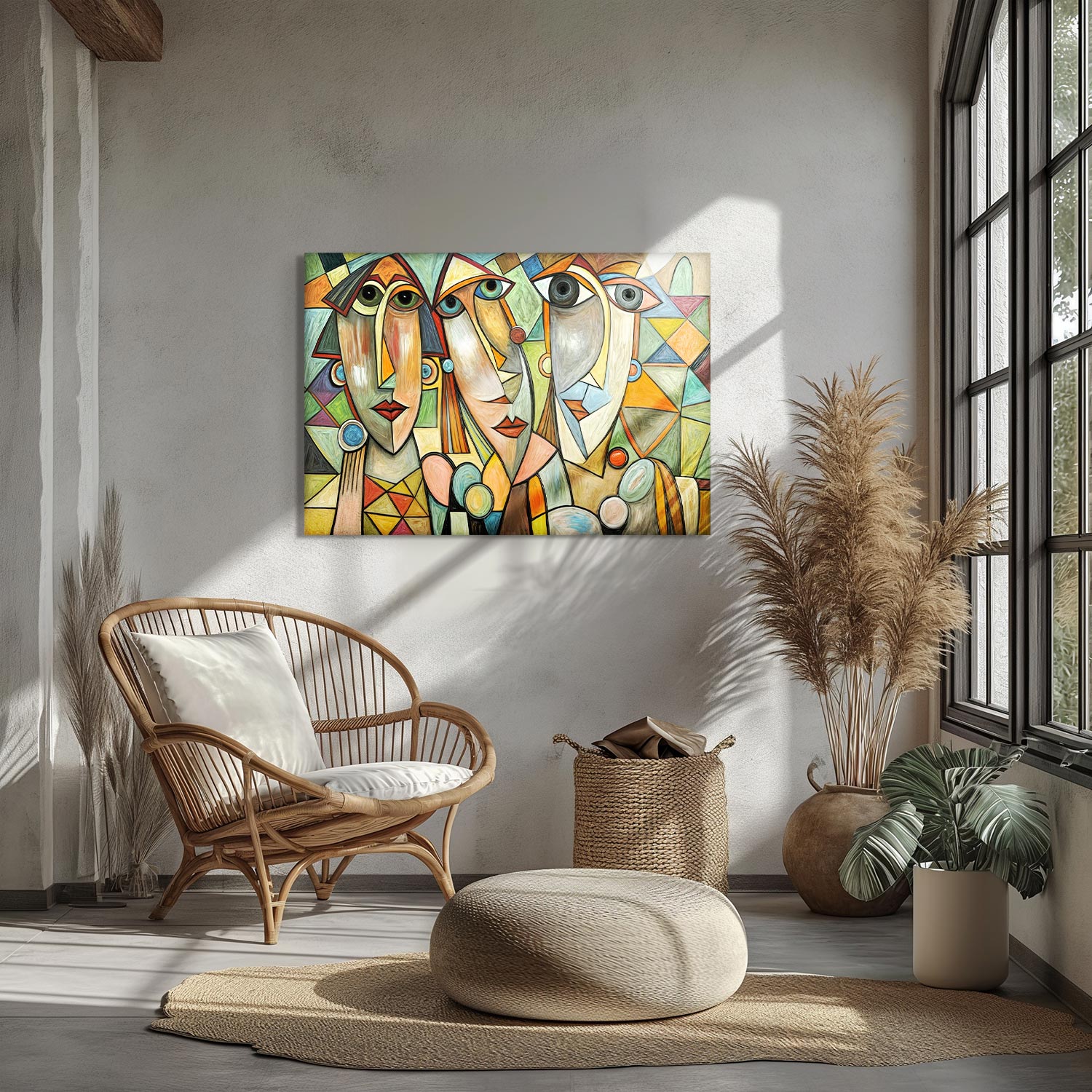 Abstract and distinct facial expressions reflect a discordant harmony of complex emotions, This piece invites the viewer on a contemplative journey into the depths of feelings,