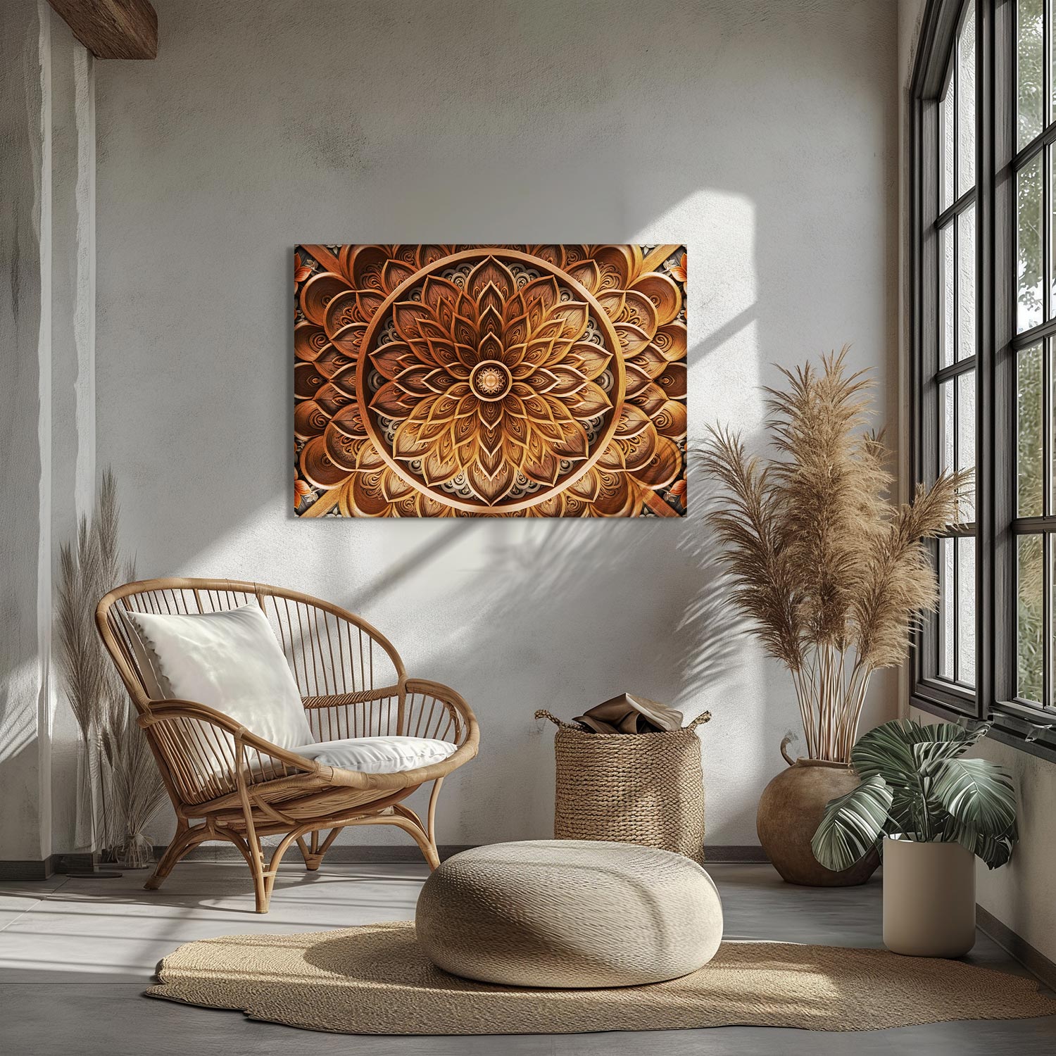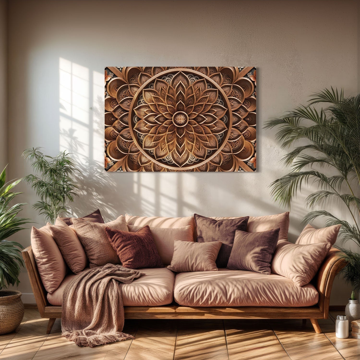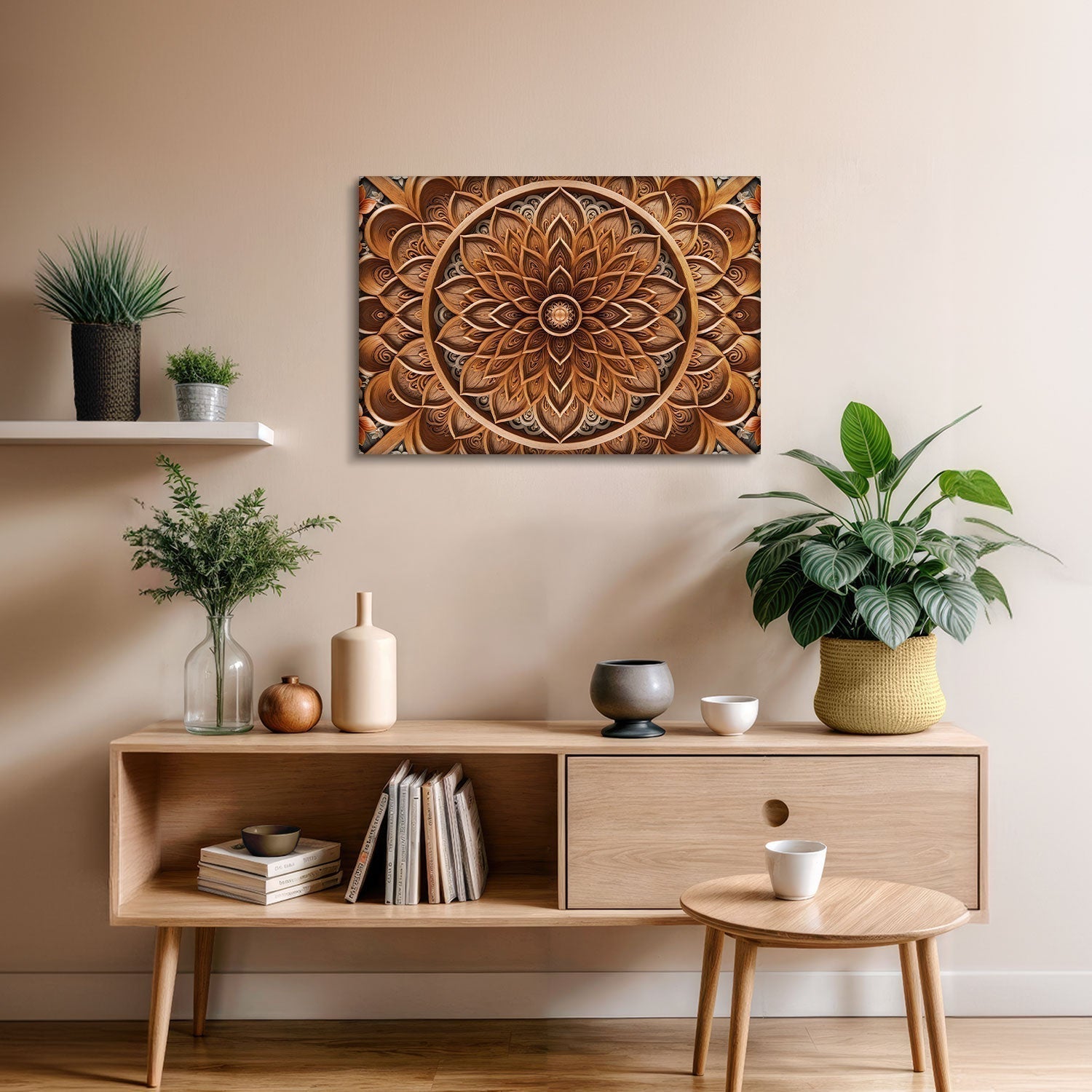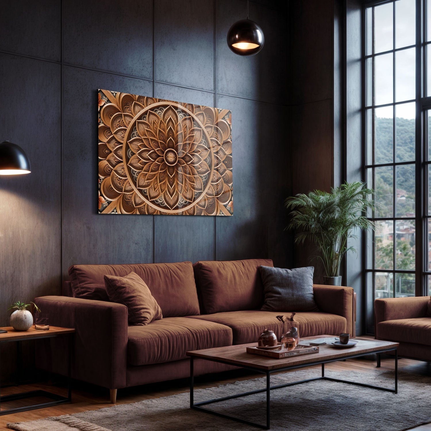 This elegant motif, adorned with the natural texture of wood, reflects the delicate craftsmanship of art in every detail, The intertwined leaves and floral patterns add depth and movement to the piece, Discover this unique artwork in your home and embark on an aesthetic journey,