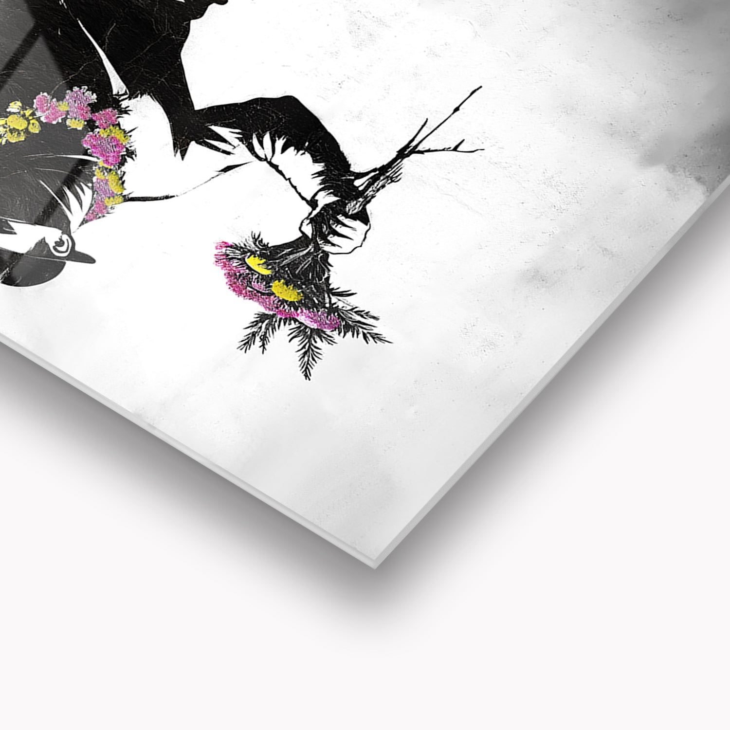 This wall art portrays a rebellious figure holding a bouquet of flowers, spreading hope and positivity to its surroundings with the flowers adorning its body, It invites everyone who observes it to believe in the power of beauty and art to change the world,