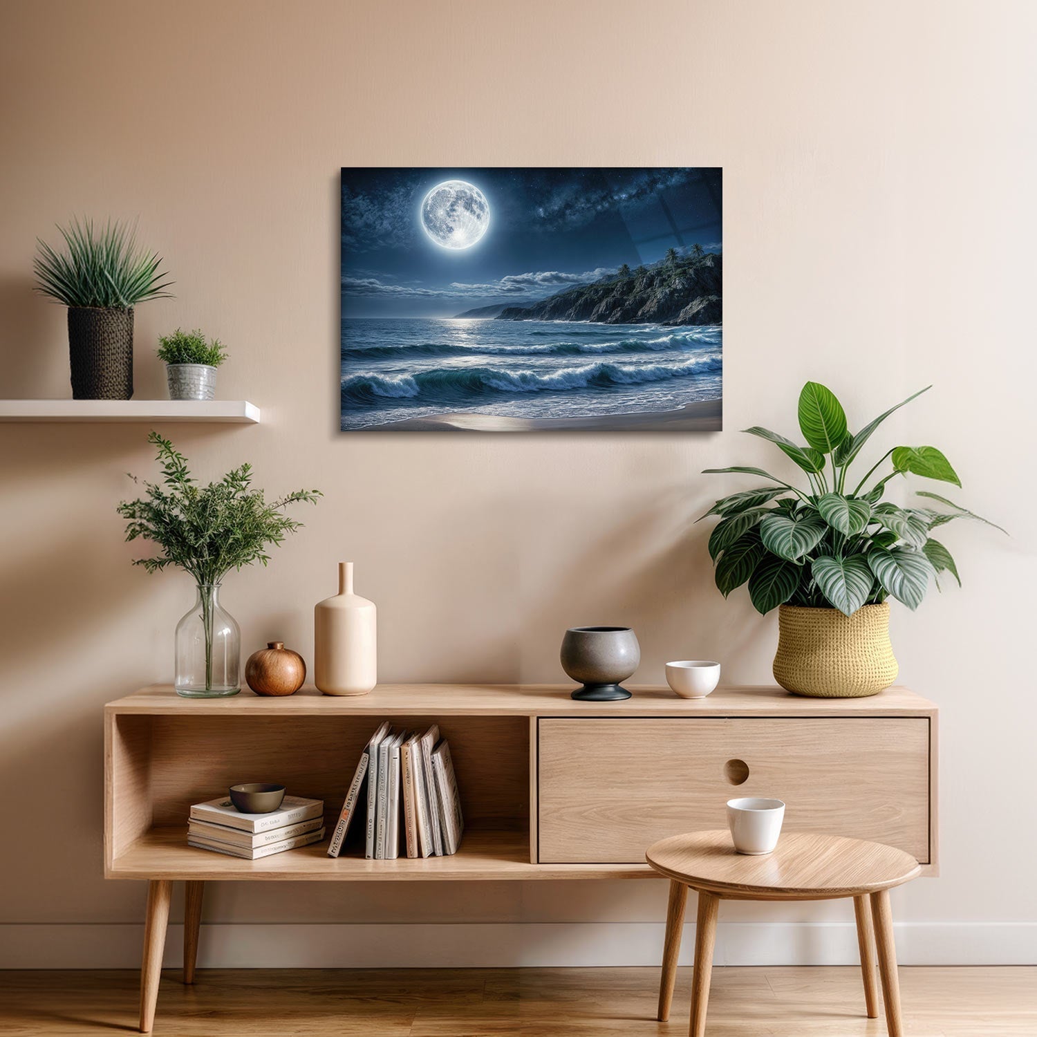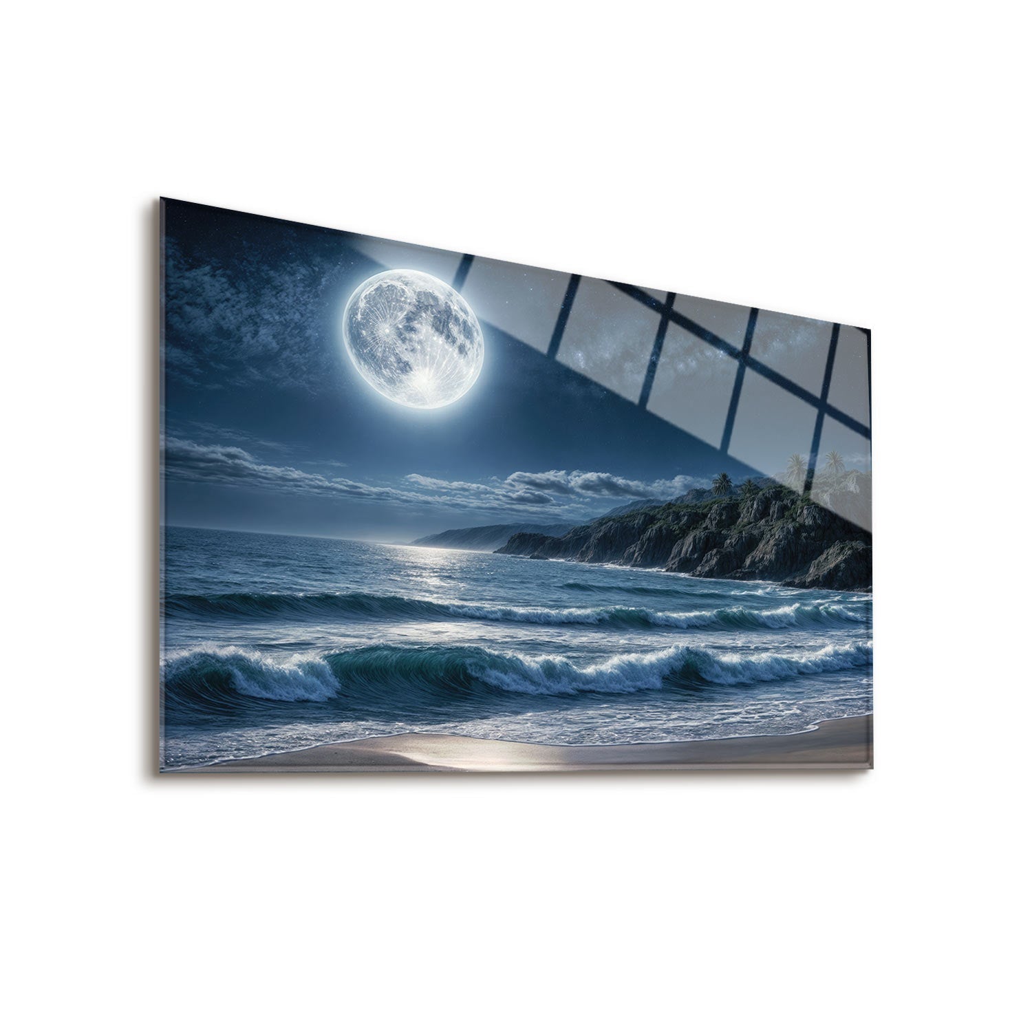 As the tranquility of the night settles in, the moonlight illuminates the shimmering shore, while the turbulent waves crash against the coastline before receding silently, We bring you this breathtaking natural phenomenon, uniting you with the magic of the sea and the sky,