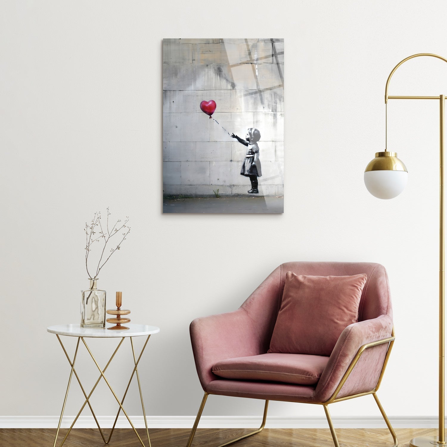 The red balloon flying from the hand of a little girl rises as a symbol of freedom and innocence, This artwork offers an opportunity to capture an untainted hope and to experience that moment every day in your home,