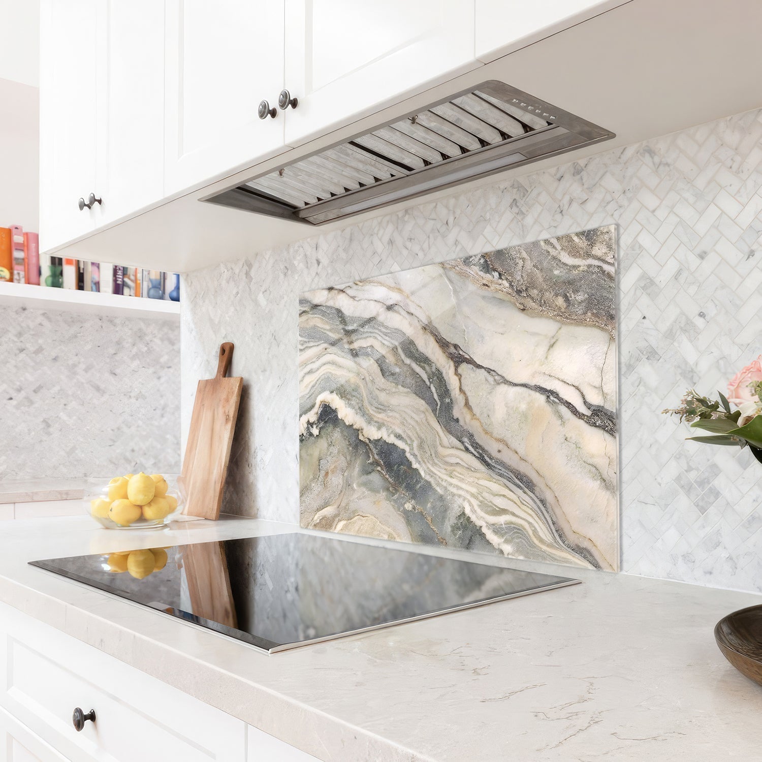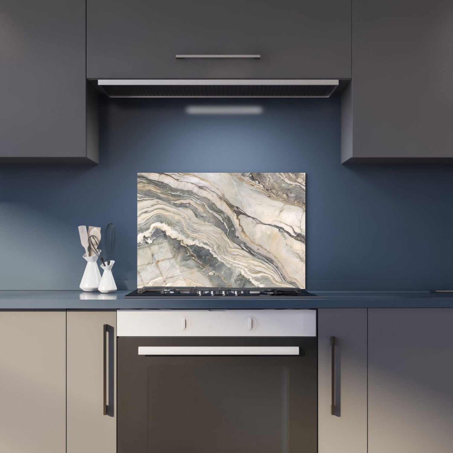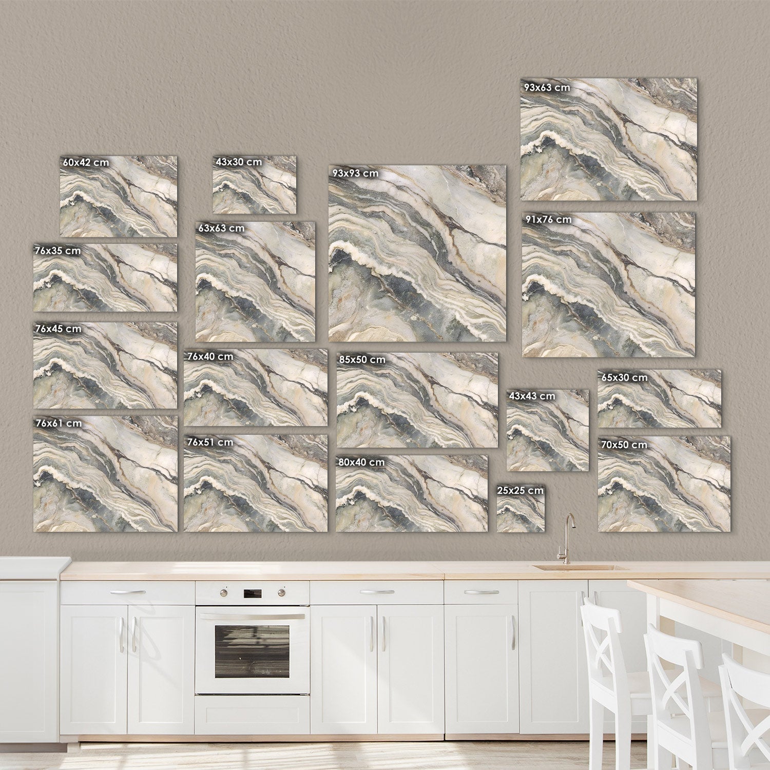 "The marble pattern where clouds and waves meet in the kitchen brings the soothing beauty of nature into your home, With every meal, you'll enjoy the tranquility brought by this unique work of art,"