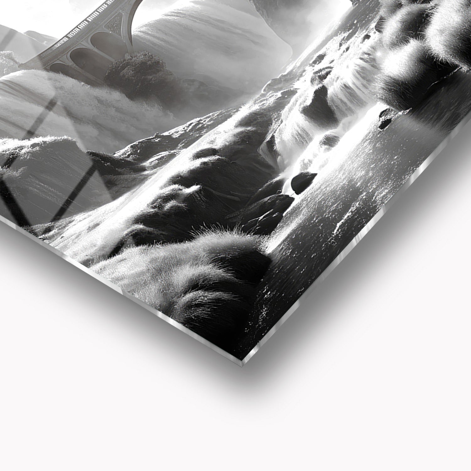 "When the magical touches of shadows and light merge with the misty veil dancing around the waterfalls, listen to the silent song of time passing under the bridge, This piece, hanging on the walls of your home, invites you to the deep breath of nature at any time of the day,"