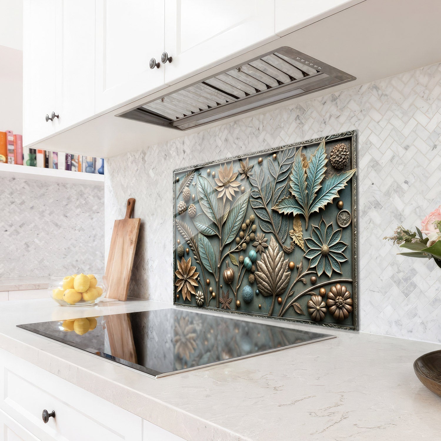 This glass artwork, adorned with the elegant motifs of nature, adds both elegance and freshness to your kitchen, The fine details and soft color tones bring a peaceful atmosphere to your space, Discover this artistic piece in your kitchen and add a touch of aesthetic charm,