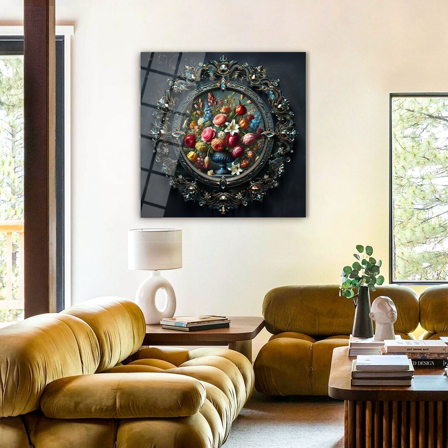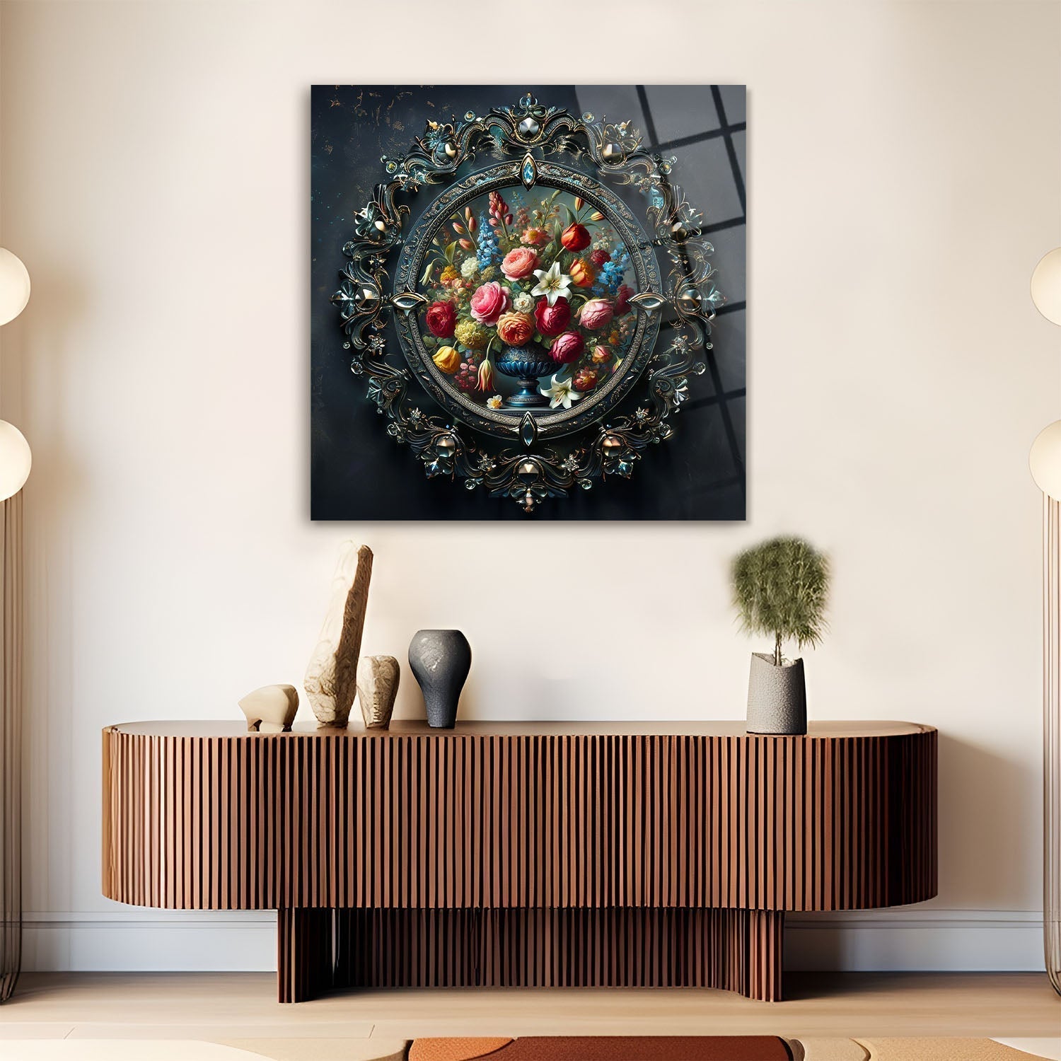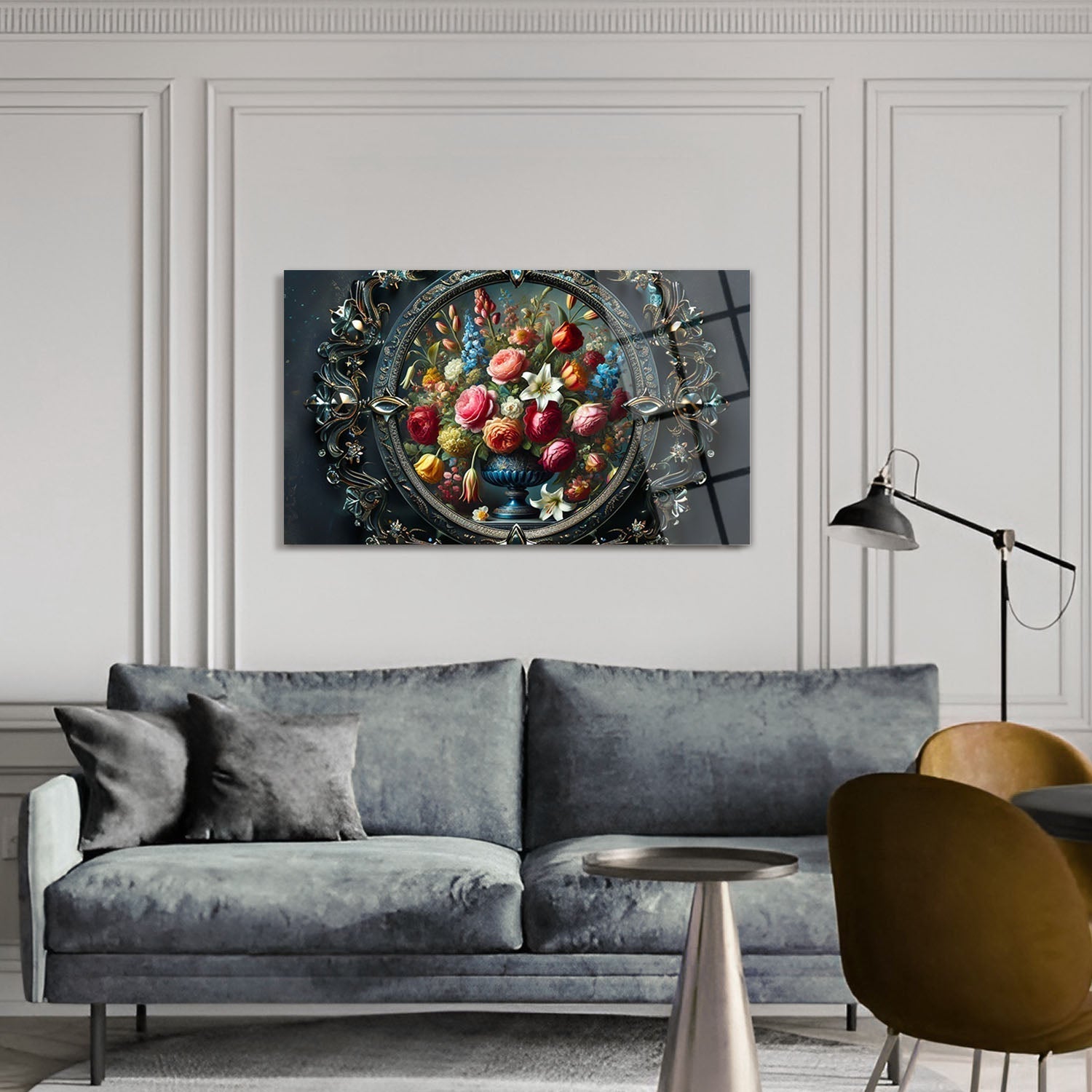Displayed within a rich golden frame, the floral arrangement stands as a captivating work of art, Each flower reflects the vibrant splendor of nature, speaking directly to your soul, By adding this rare piece to your space, you’ll infuse your home with a spiritual touch and feel a sense of peace every day,