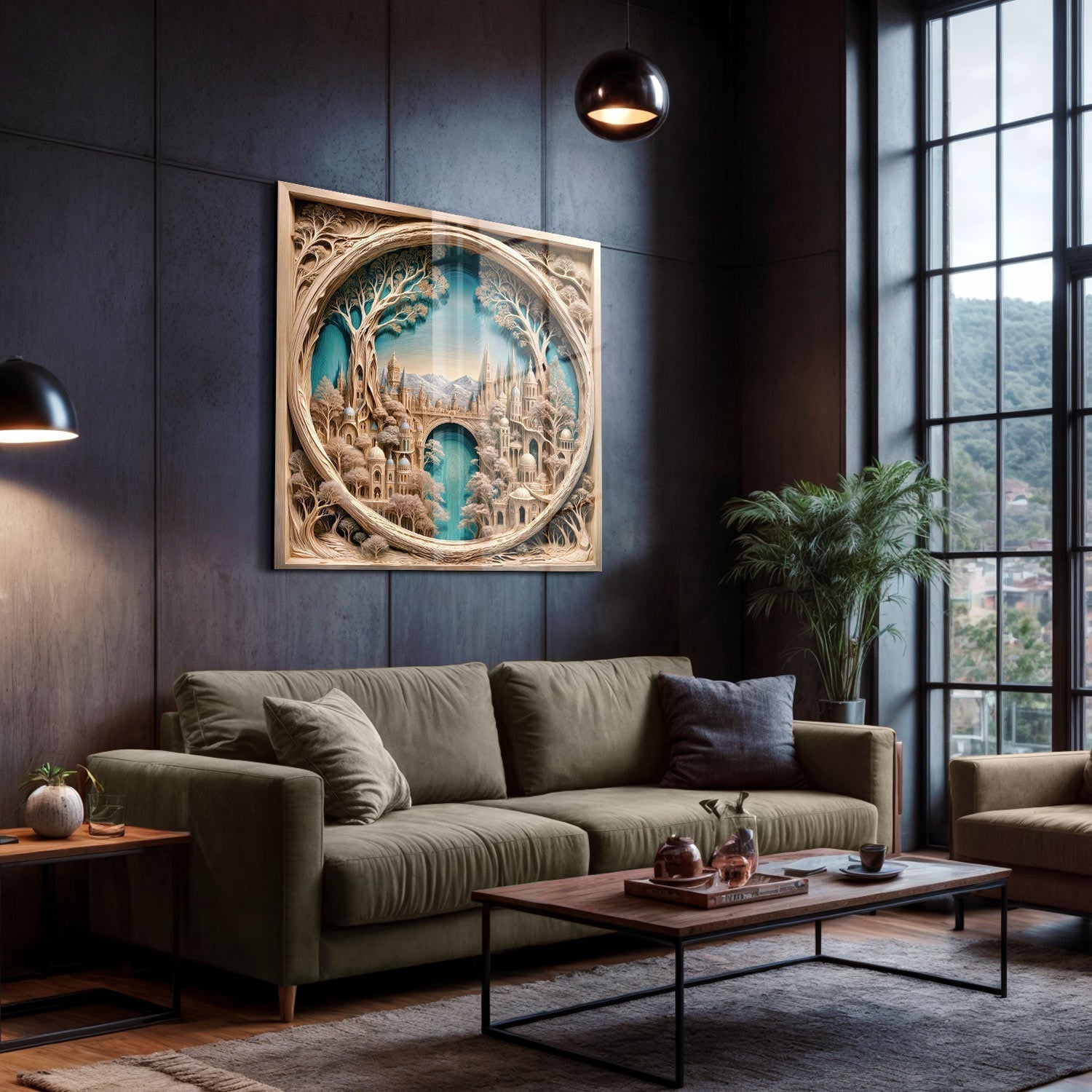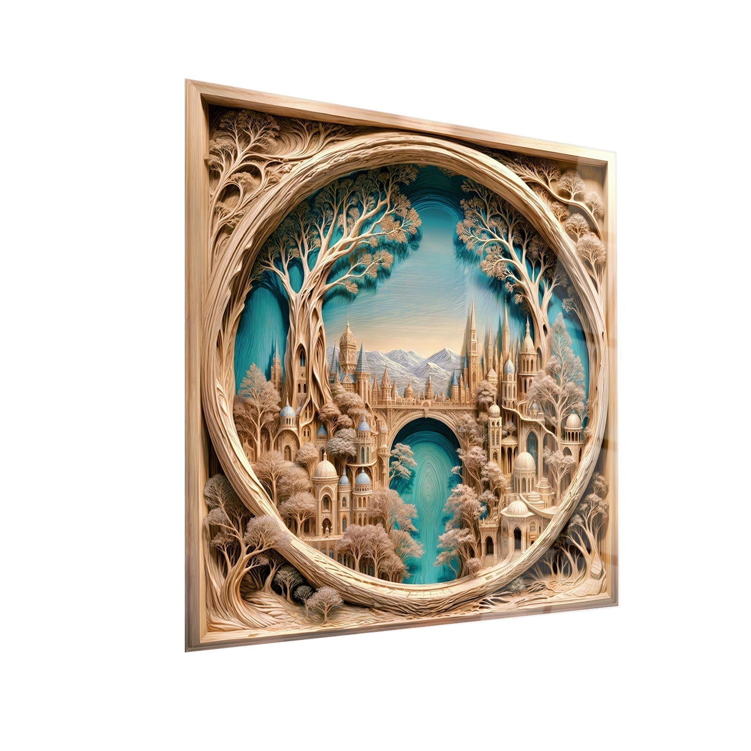 In the embrace of nature, a majestic city offers serene beauty at the foot of the mountains, Bring this tranquil scene into your home and enjoy the peace every day,