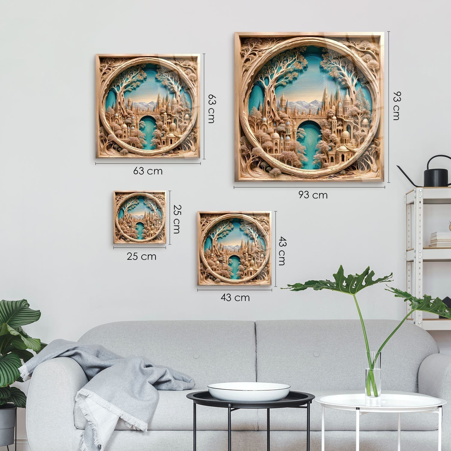 Our products are sent ready to hang on the wall. In some of our wall art, large size options (over 100 cm) are sent as 2 or 3 pieces and can be easily mounted with the screws that come with the product. In order to hang the product on the wall, it will be sufficient to hang with 1 nail or screw suitable for your wall and then hang it from the sawtooth hanger on the back of the product. There are some elevator screws on the wall art that keep it 2 cm away from the wall, creating a beautiful 3D appearance to the wall art.