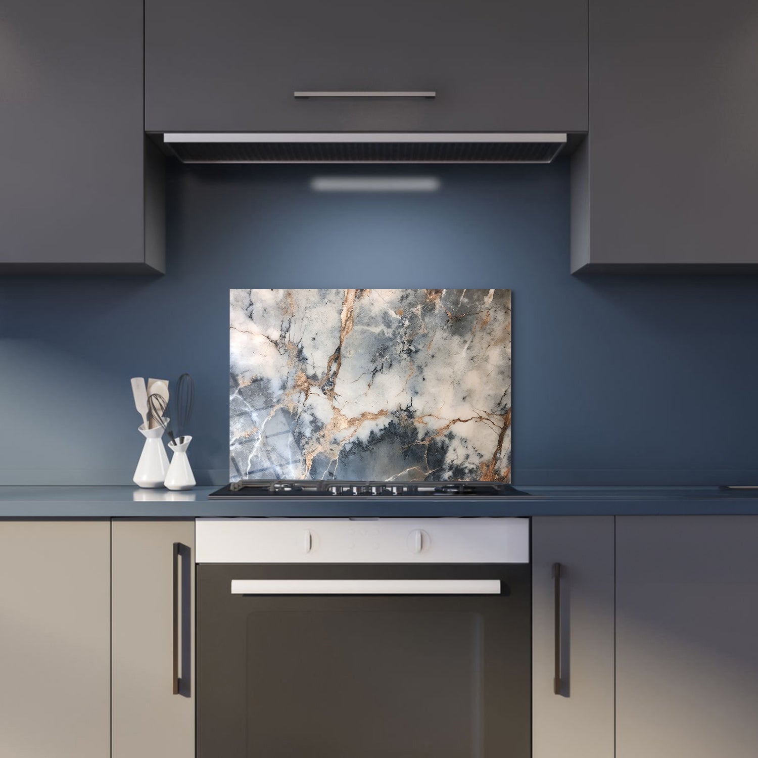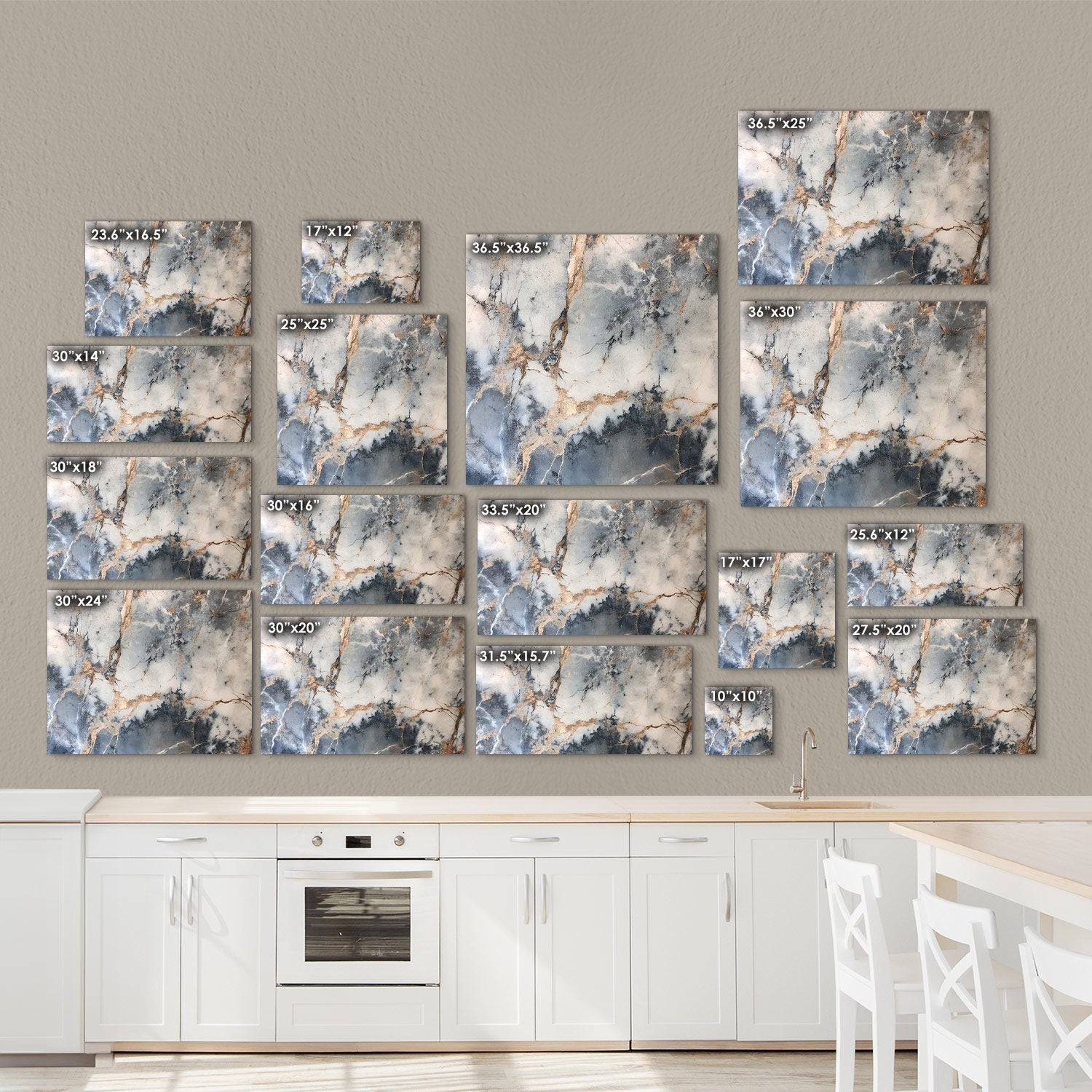 The meeting of blues and beiges in this natural design recalls a stormy sky above a peaceful sea, To add a noble expression to your kitchen, invite a work of art as unique and striking as nature itself into your home,